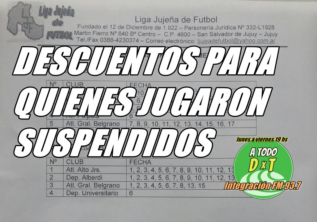 Leer másMÁS SUSPENDIDOS Como lo hiciera faltando dos fechas para culminar la primera rueda, y faltando dos para que termine el